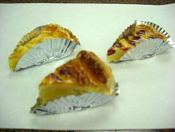そして、タルトは、フランボワーズ、ブルーベリー、ブラックベリー、オレンジ、パイナップル、さくらんぼ、200〜250円で。ただ今、イチジクのタルトを準備中です。本物の果実の香りを楽しんでください。