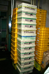 月末31日、市場の中はあわただしく動いています。今日はいろいろなものを思い通りに仕入れることができ、車に乗りきれないので屋根に乗せて帰ってきました。スイカ(三浦)、ブドウ(メキシコ)、サクランボ(山形)、バナナ(エクアドル)、グレープ(USA)、オレンジ、エトセトラ。イチゴは国産も入荷。