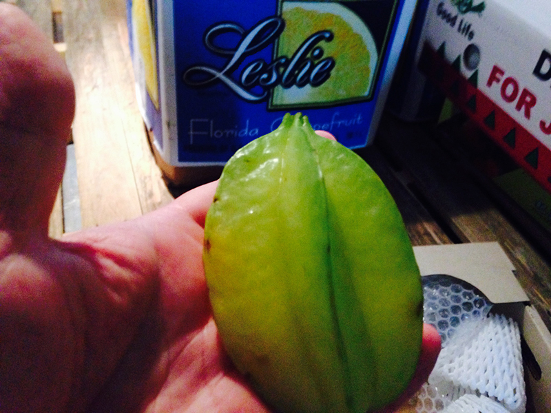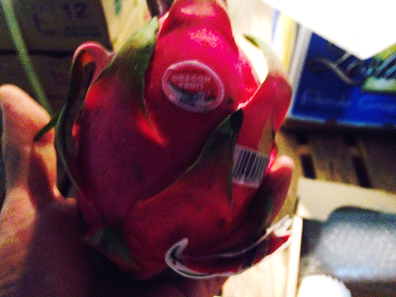 右上はスターフルーツ、切ると断面が星の形をしている。そして左下はドラゴンフルーツの白(中味が)、それぞれ少しずつ買ってみた。フルーツポンチにするつもり。