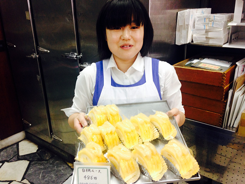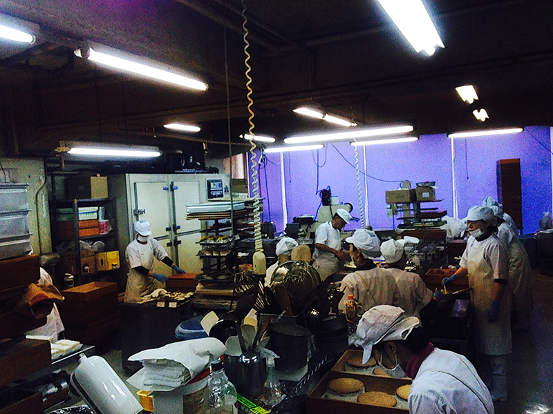 近江屋洋菓子店は季節の素材、そして新鮮さをもとめて毎日、店主が市場で直接仕入れる店です。近江屋の菓子は「わっ、きれい」とか、「カワイイ!」というものではないかもしれません。焼きっぱなし、切りっぱなしの菓子です。リーズナブルだけどチープではないものを、気楽に買える。子供たちが冷蔵庫から手づかみでかぶりつくところを考えて、材料は最高のものをおしげなくふんだんに使います。工場のオーブン、ミキサーなど最高のものを導入しています。そして職人たちにおごりはありません。