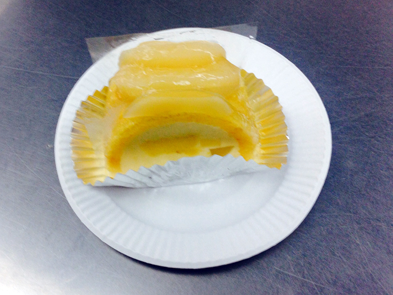 これは今が旬の「ミカンのムース」、うえにバームクーヘンをのせてみました。そして、夕方にはアイベリーの「チョコレートがけ」、525円で。