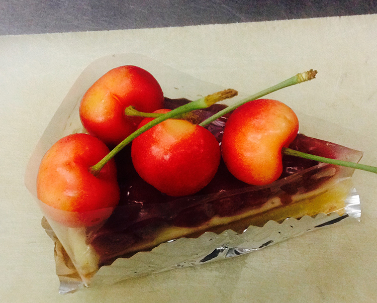 サクランボはたくさん買ってきました。サワーチェリーのうえにのせてみます。