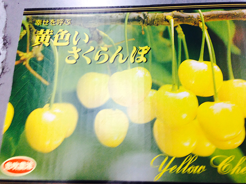 「幸せを呼ぶ黄色いサクランボ」と書いてある。酸味はあまりなく、甘くてウマイ。値段は赤サクランボの倍以上で少し買ってみました。