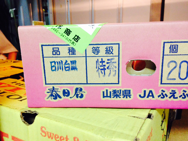 前回買ったモモがやたら旨かったので、今日買ったモモはゆるいゼリー状のなかにいれてみようと思っている。前回、タルトにしたらあっという間に色が変わってしまった。値段は普通のものよりかなり高い、「なんでこんなに高いのか?」と聞くと、仲卸いわく「春日居のモモでそれも特秀(最上級)だ」と言っている。春日居のモモはブランド品で高級果実店の扱うものらしい。確かに香りも甘さもとてもよい。