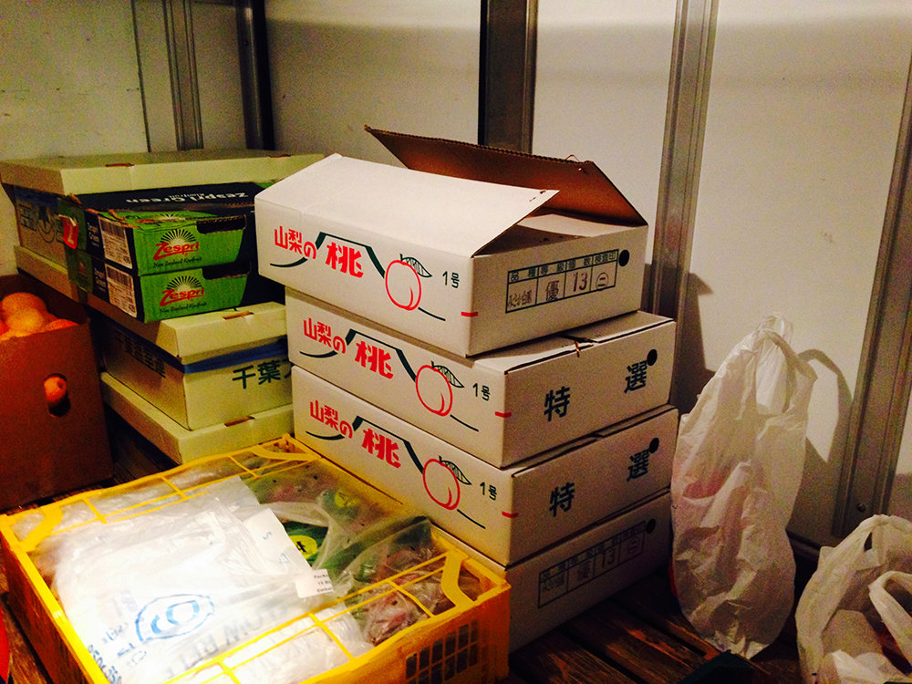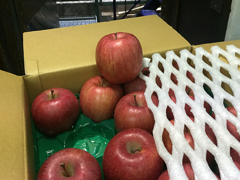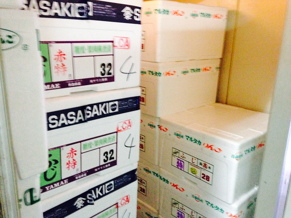 ある程度のロットで買わないと安くならない。店にはリンゴ専用の冷蔵庫がある。(6畳ほどの大きさ)