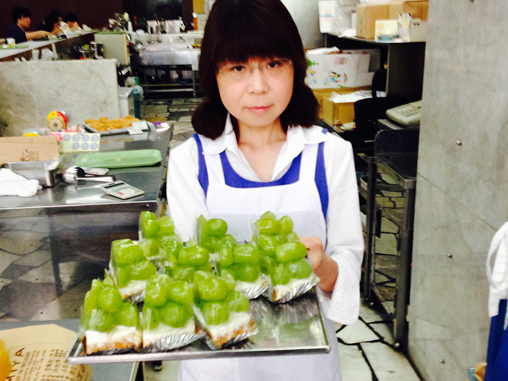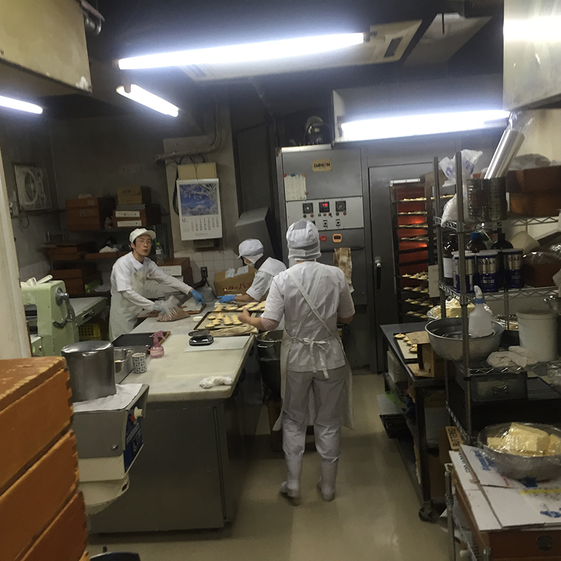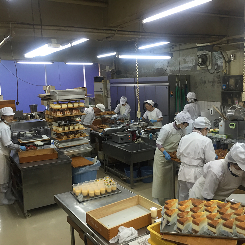 近江屋洋菓子店は季節の素材、そして新鮮さをもとめて毎日、店主が市場で直接仕入れる店です。近江屋の菓子は「わっ、きれい」とか、「カワイイ!」というものではないかもしれません。焼きっぱなし、切りっぱなしの菓子です。リーズナブルだけどチープではないものを、気楽に買える。子供たちが冷蔵庫から手づかみでかぶりつくところを考えて、材料は最高のものをおしげなくふんだんに使います。工場のオーブン、ミキサーなど最高のものを導入しています。そして職人たちにおごりはありません。