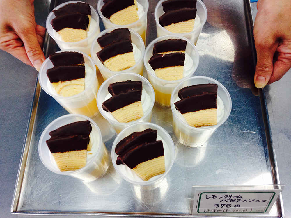 あとレモンをたっぷりとしぼったレモンクリーム。上にバームクーヘンをのせてみました。