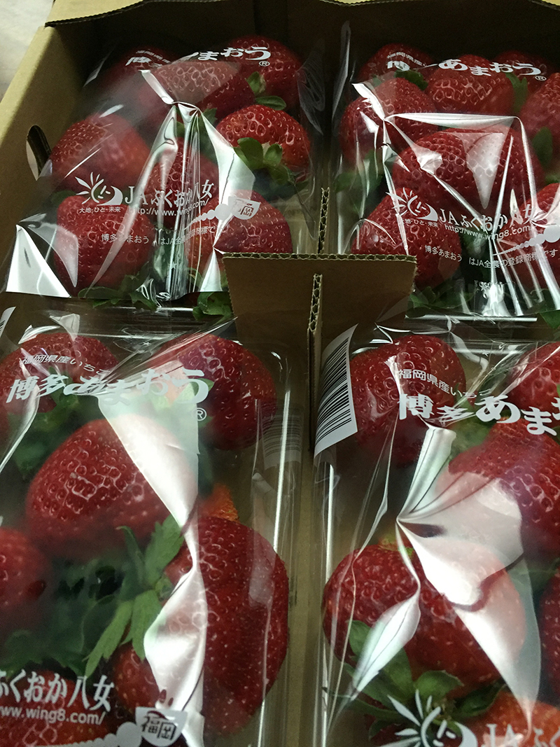 イチゴは国産からUSAカリフォルニア産に変わります。今日仕入れてきたイチゴは日本向けの新しい品種です。名前は「ギンザ」という。なんという名前の付け方なのだろう。アメリカ人らしい、、、