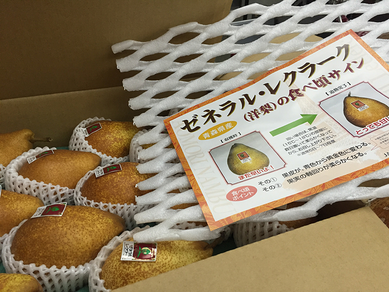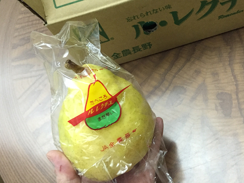 長野のル・レクチェ。「忘れられない味」と書いてある。洋なしはいろんな品種があり自分でもわからないくらい、、