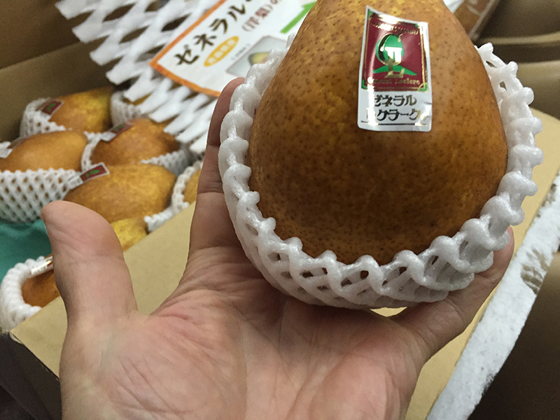 初ものです。洋なしオーロラ、ねっとりと洋なしらしい味わいの品種です。食べ頃が難しい。あっという間に追熟してしまう。