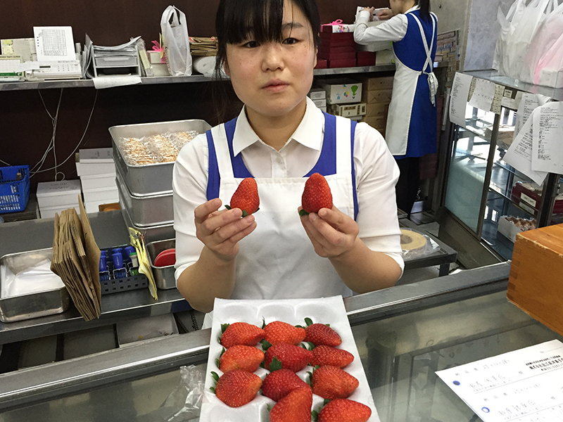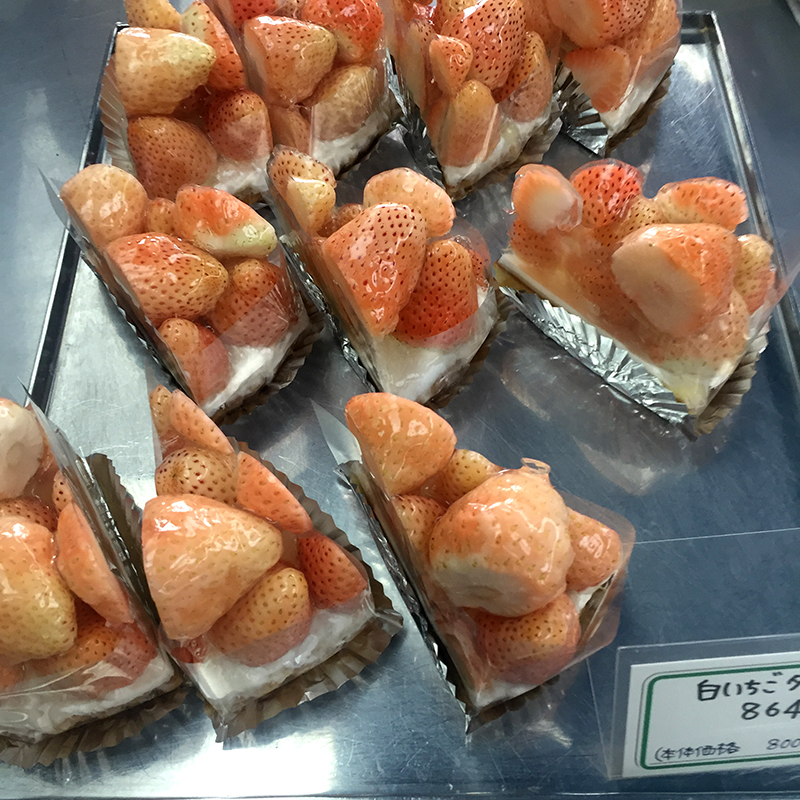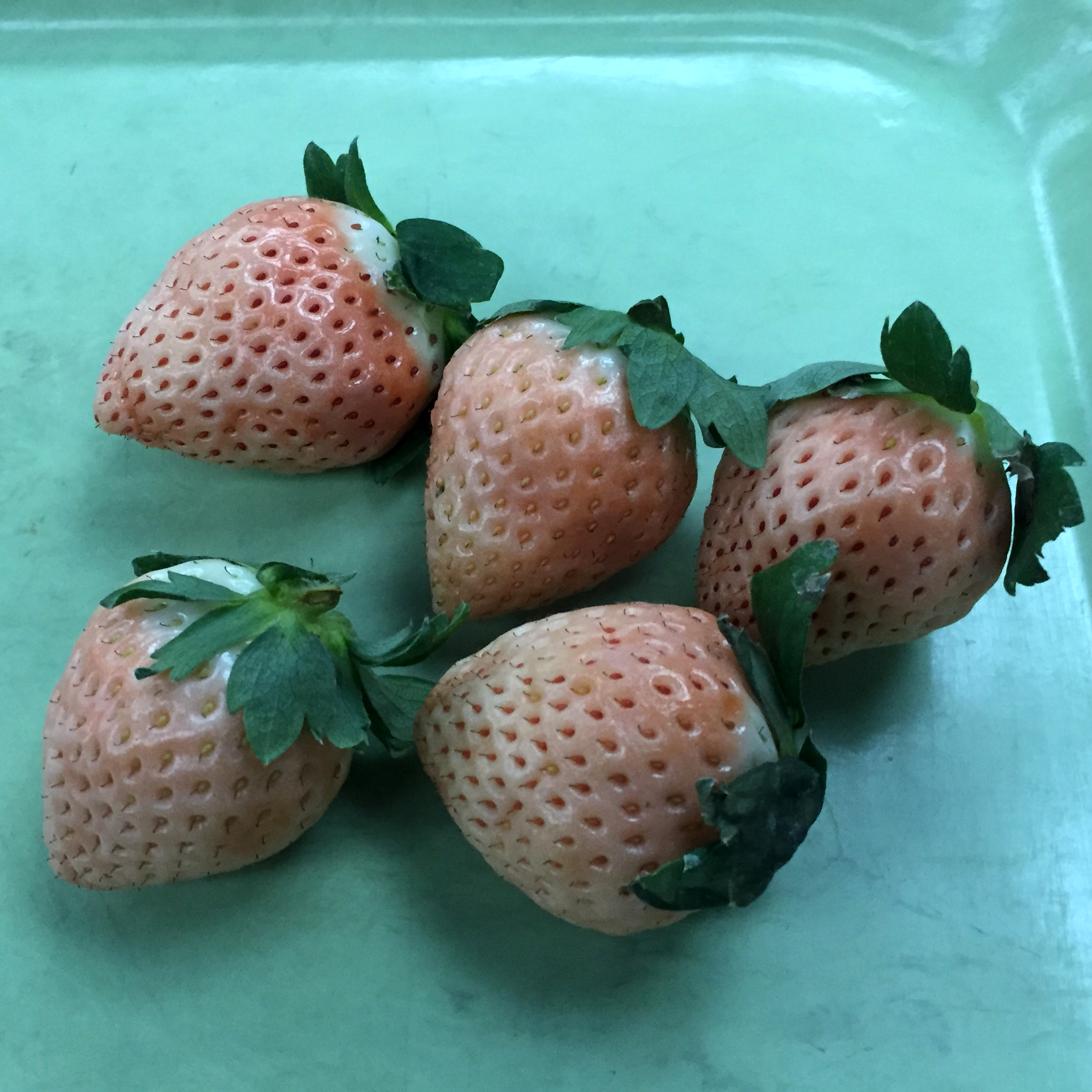 ここ2〜3年ででてきた「淡雪」という品種。なにか赤いイチゴに慣れていると白ちゃけている感じがするがこういうものらしい。