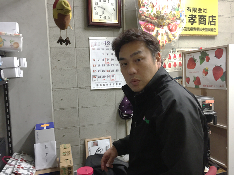 市場ではイチゴに関して一目置かれている人物です。店でも若い頃からの付き合いで昭和40年代の神田市場の時からいろいろな時代を過ごしてきた。