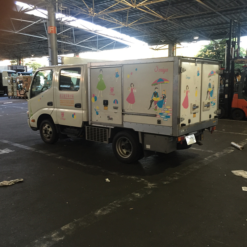 一度で運びきれずもう一度トラックは市場へと、、駐車場の隣の八百屋のオヤジが、「景気よさそうだなぁ、、」と、(笑)