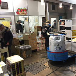 初セリ、野菜で作られた宝船が3艘出ていました。誰が買ったのでしょうか。