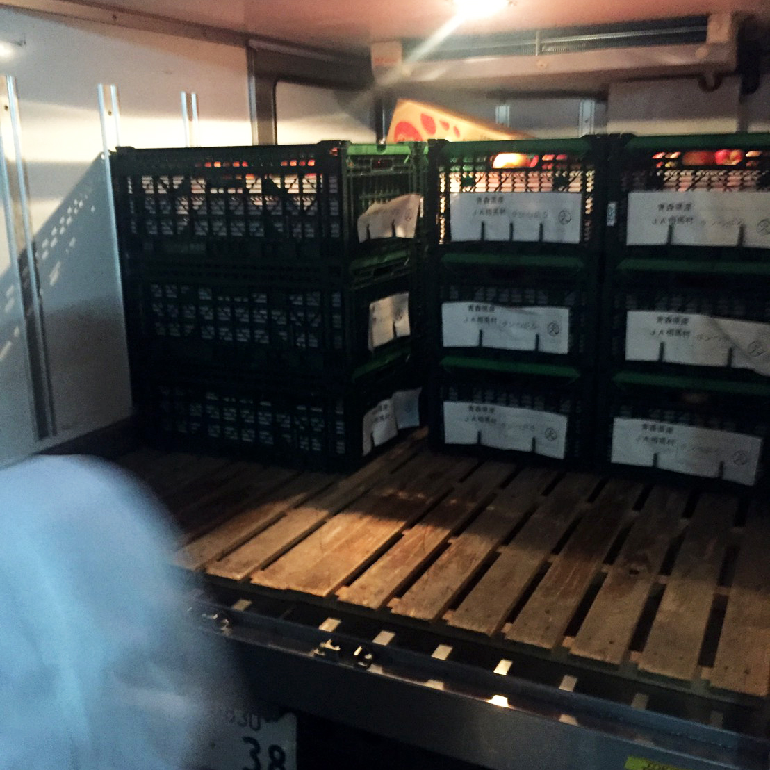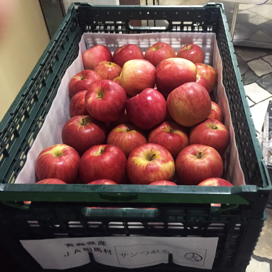 アップルパイのリンゴ いよいよフジ、サンフジがでてきました。山形県、青森県産のリンゴをトラックいっぱいにして店に帰ってきました。