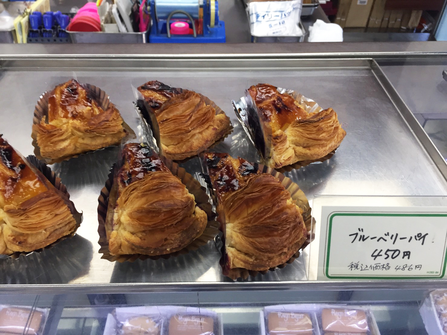 ブルーベリーパイ、生のブルーベリーいっぱい入荷しました。これをさっと煮てパイにしました。とってもリッチな感じです。缶詰のものではありません。