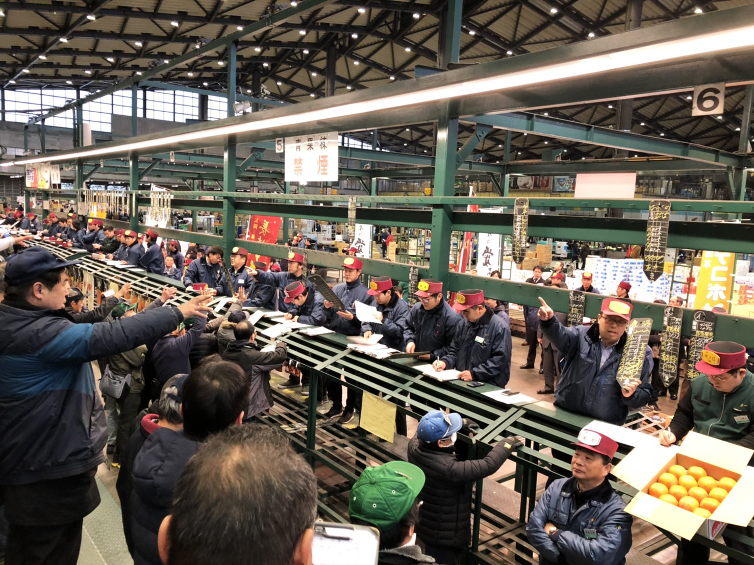 恒例のサクランボ。いっぺんで35万円の値が付き一発で決まりました。気合いの入ったセリでした。今年一年の景気が良くなりますように、、、