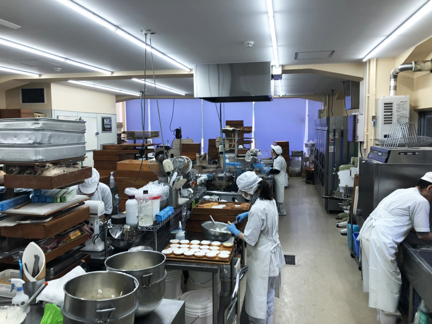 近江屋洋菓子店は季節の素材、そして新鮮さをもとめて毎日、店主が市場で直接仕入れる店です。近江屋の菓子は「わっ、きれい」とか、「カワイイ!」というものではないかもしれません。焼きっぱなし、切りっぱなしの菓子です。リーズナブルだけどチープではないものを、気楽に買える。子供たちが冷蔵庫から手づかみでかぶりつくところを考えて、材料は最高のものをおしげなくふんだんに使います。工場のオーブン、ミキサーなど最高のものを導入しています。そして職人たちにおごりはありません。