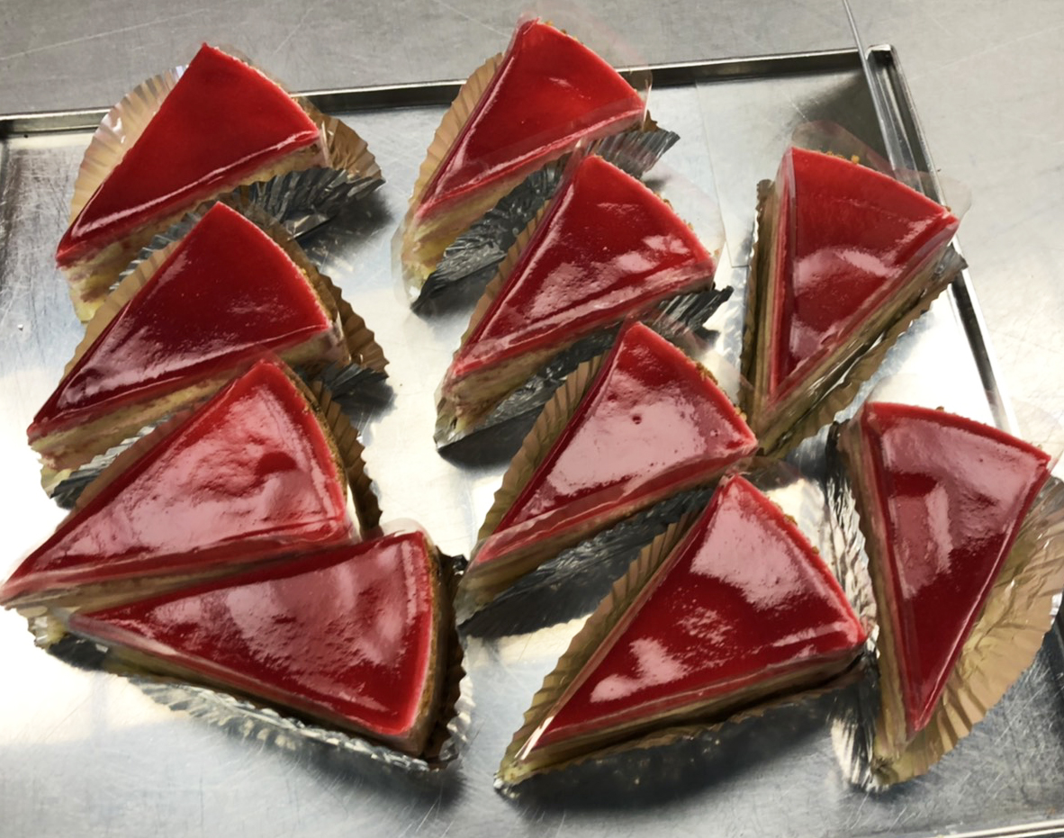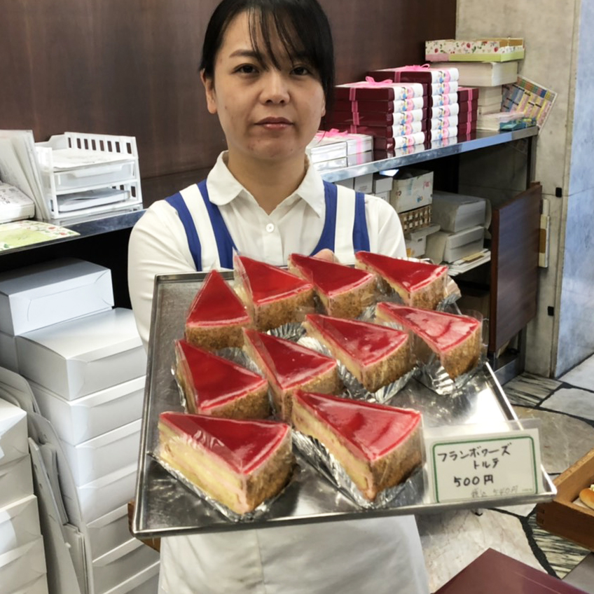 フランボワーズのトルテ なんとも芳醇な香り、豊かな贅沢な一品です。洋酒をタップリと生のフランボワーズを潰してバタークリームで仕上げています。1980年代の高級店などでよく流行っていました。懐かしく食べると嬉しくなってしまう菓子です。