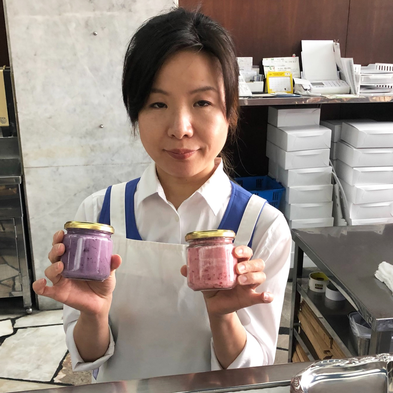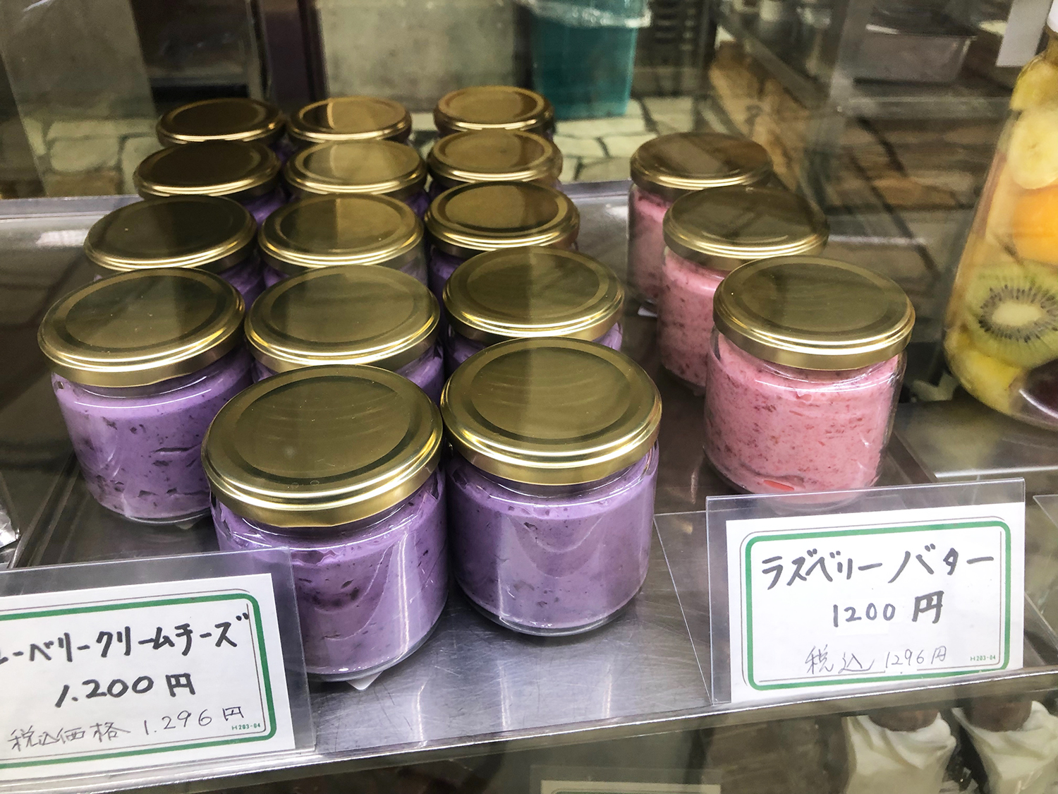これはフランボワーズバターとブルーベリーのクリームチーズです。何年か前、スペインのサンセバスチャンの三つ星レストランで食べた時出てきたもののようなもの。